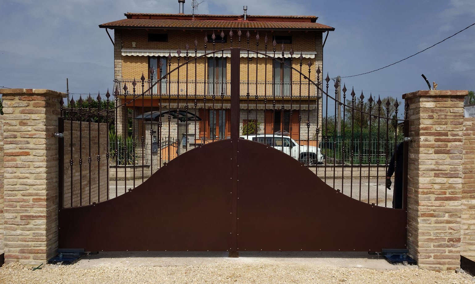 I nostri cancelli in ferro artigianali sono progettati su misura per valorizzare l’ingresso di abitazioni e aziende. Ogni cancello nasce da un lavoro attento di progettazione e saldatura, dove solidità e design convivono. Realizziamo cancelli battenti o scorrevoli, in stile classico o moderno, con finiture resistenti agli agenti atmosferici. Il risultato è un prodotto robusto, sicuro e durevole, che rappresenta il vero biglietto da visita della proprietà.